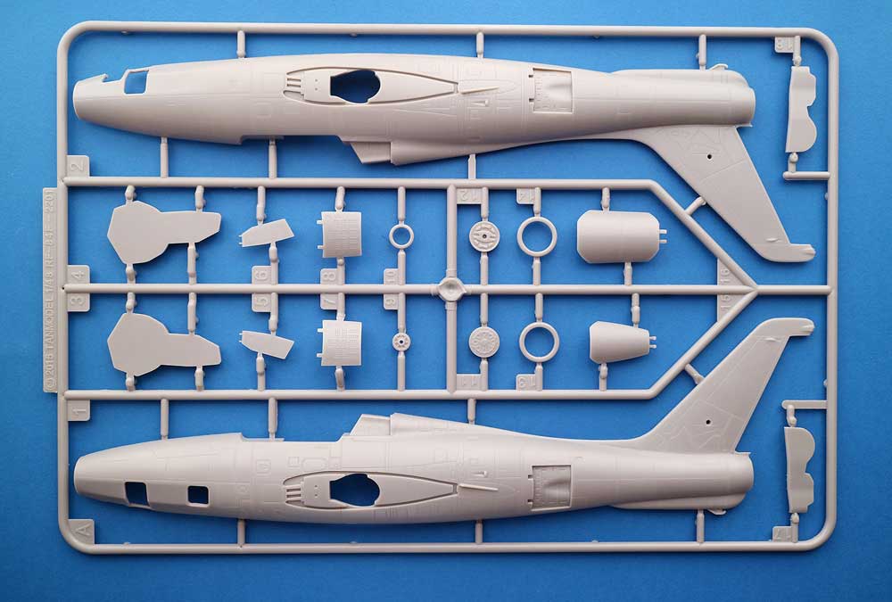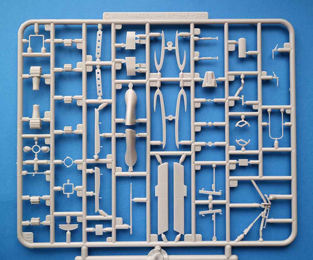 1950年代から60年代を中心に活躍したジェット戦闘機、F-84Fサンダーストリークの偵察機型、RF-86Fサンダーフラッシュを1/48スケールで再現したプラスチックモデル組み立てキットです。