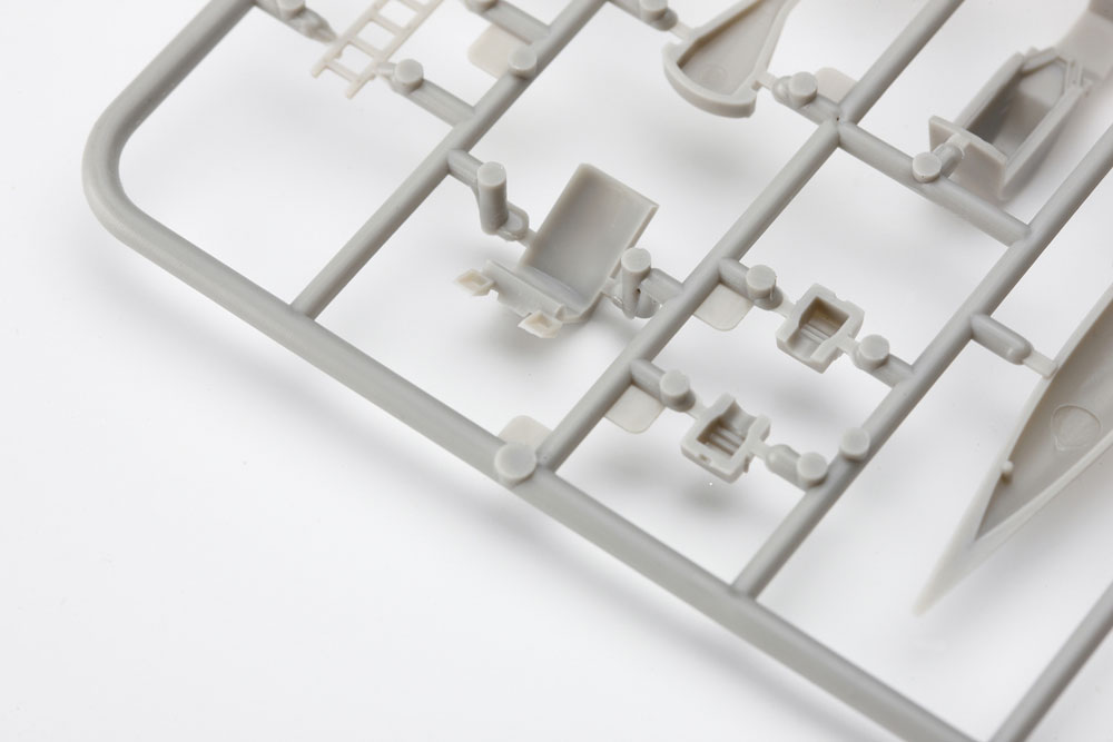 仕上がりの全長約30cmにもなる大きさで、機体形状はもちろん、後退角のついた主翼のデザインなどを繊細に表現。機体や翼表面には凹線でパネルラインやリベットが細かく再現されています。ラダー、フラップは別パーツでセットされ、組み立てのアレンジも楽しみです。