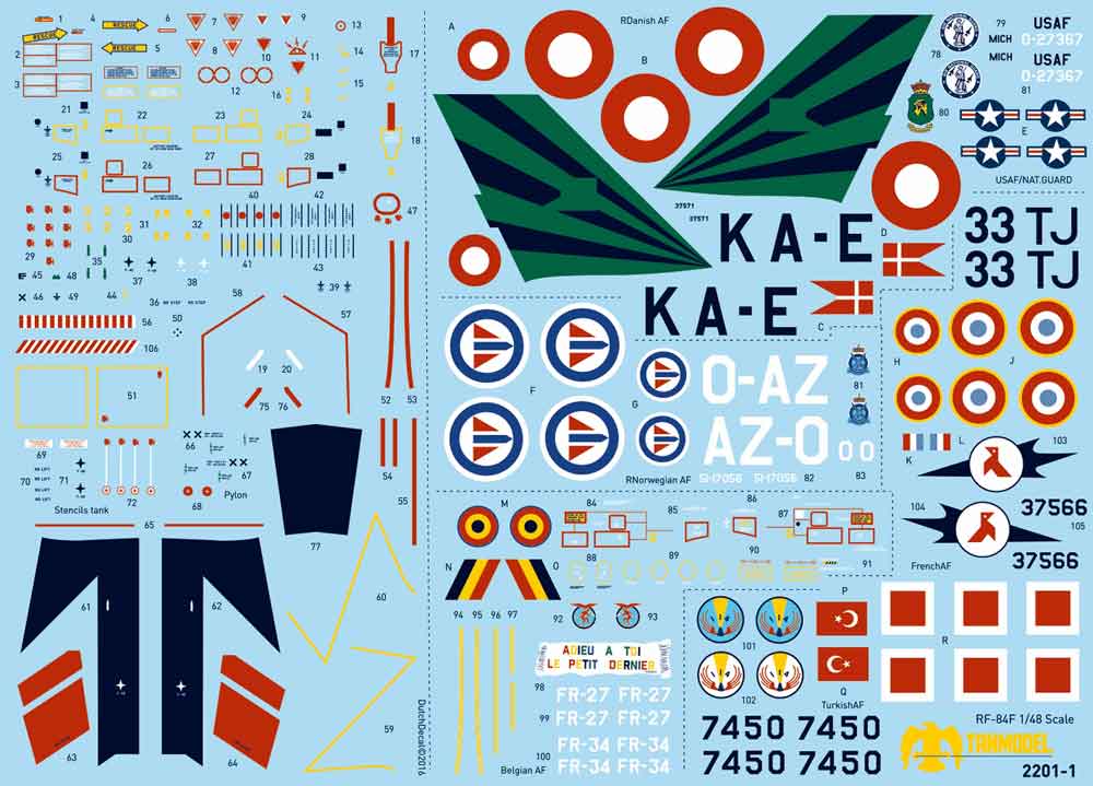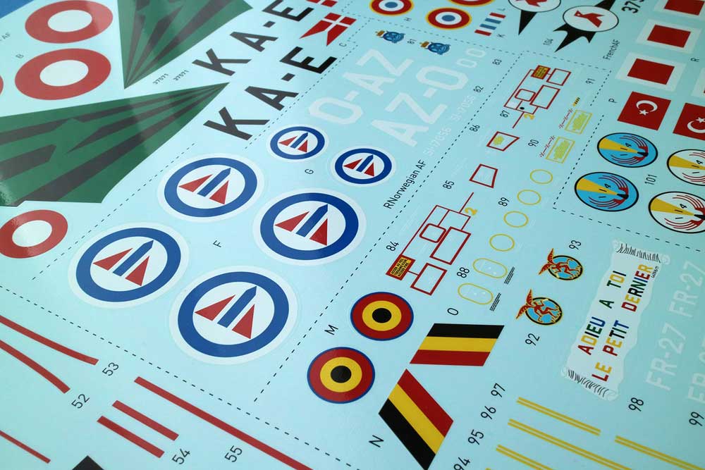 ■マーキングはアメリカ空軍機、トルコ空軍機の他に、新規でデンマーク、ベルギー、ノルウェー、フランスの各空軍機のマークもセット