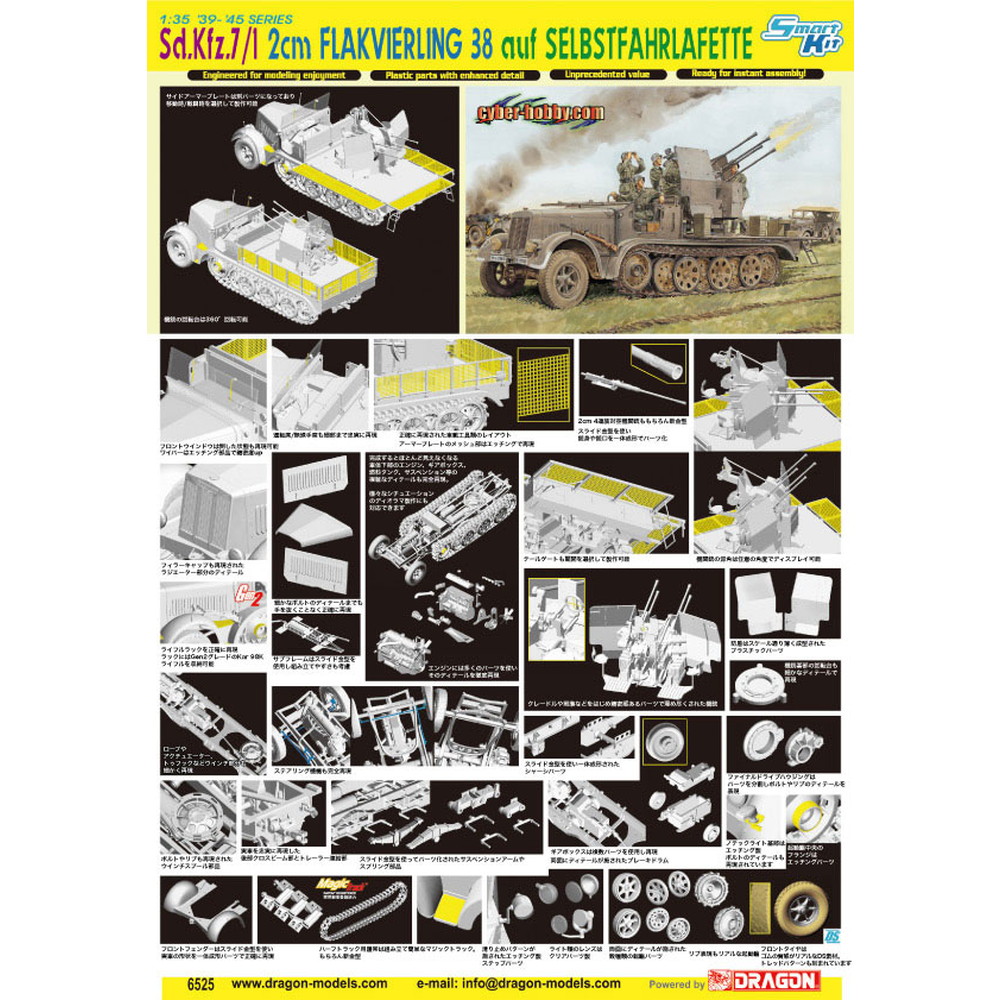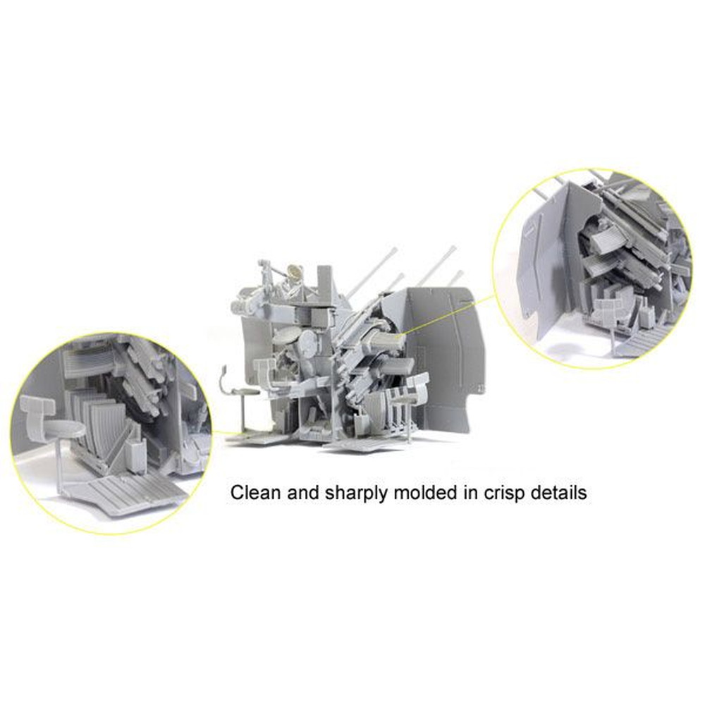 車体はもちろん"魔の四連装"四連装高射機関砲38型に至るまで全てが完全新金型。また完成後にはほとんど外からは見えなくなるエンジンやサスペンションまでをも再現。