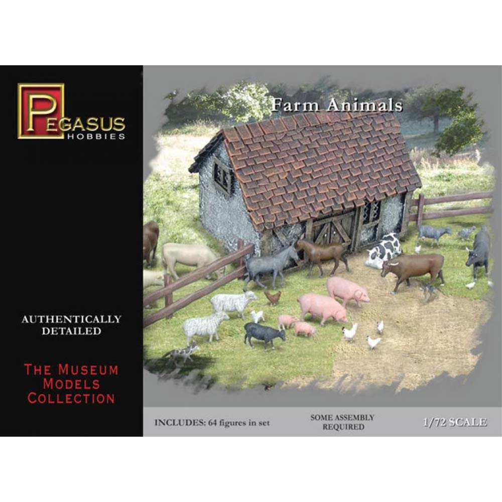 動物だけをセットしたフィギュアのセットです。動物は一般的に世界の農家で飼育されている家畜を選んでモデル化しています。1/72スケールで再現された家畜は情景シーンの幅を広げるセットです。