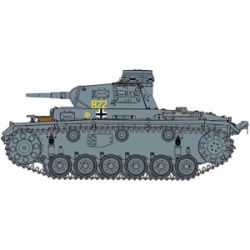 III号戦車初の量産型がオレンジボックスで登場。E型から採用された6個転輪はこれ以降、III号戦車の共通スタイルになりました。