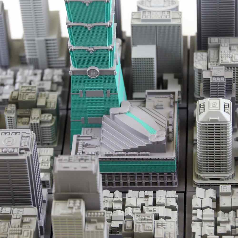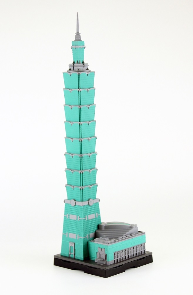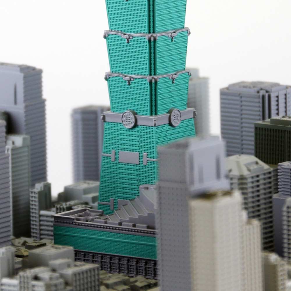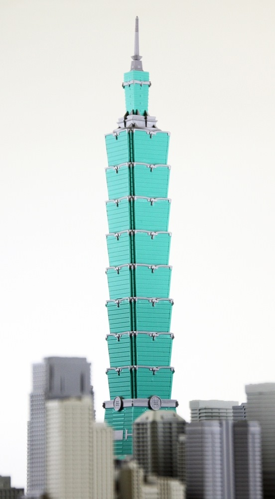 地上101階、高さは509.2m。2004年に世界一の超高層建築物として竣工し現在の東アジアでは最長の超高層ビル「台北101」を1/2500スケールで立体化しました。