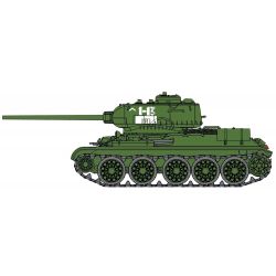 第二次世界大戦から戦後にかけて活躍したソビエト軍の主力戦車T-34の85mm砲搭載型を1/72スケールで再現した組み立て完成済みモデルです。モデルは85mm戦車砲S-53を搭載する1944年型と呼ばれるタイプを再現しています。