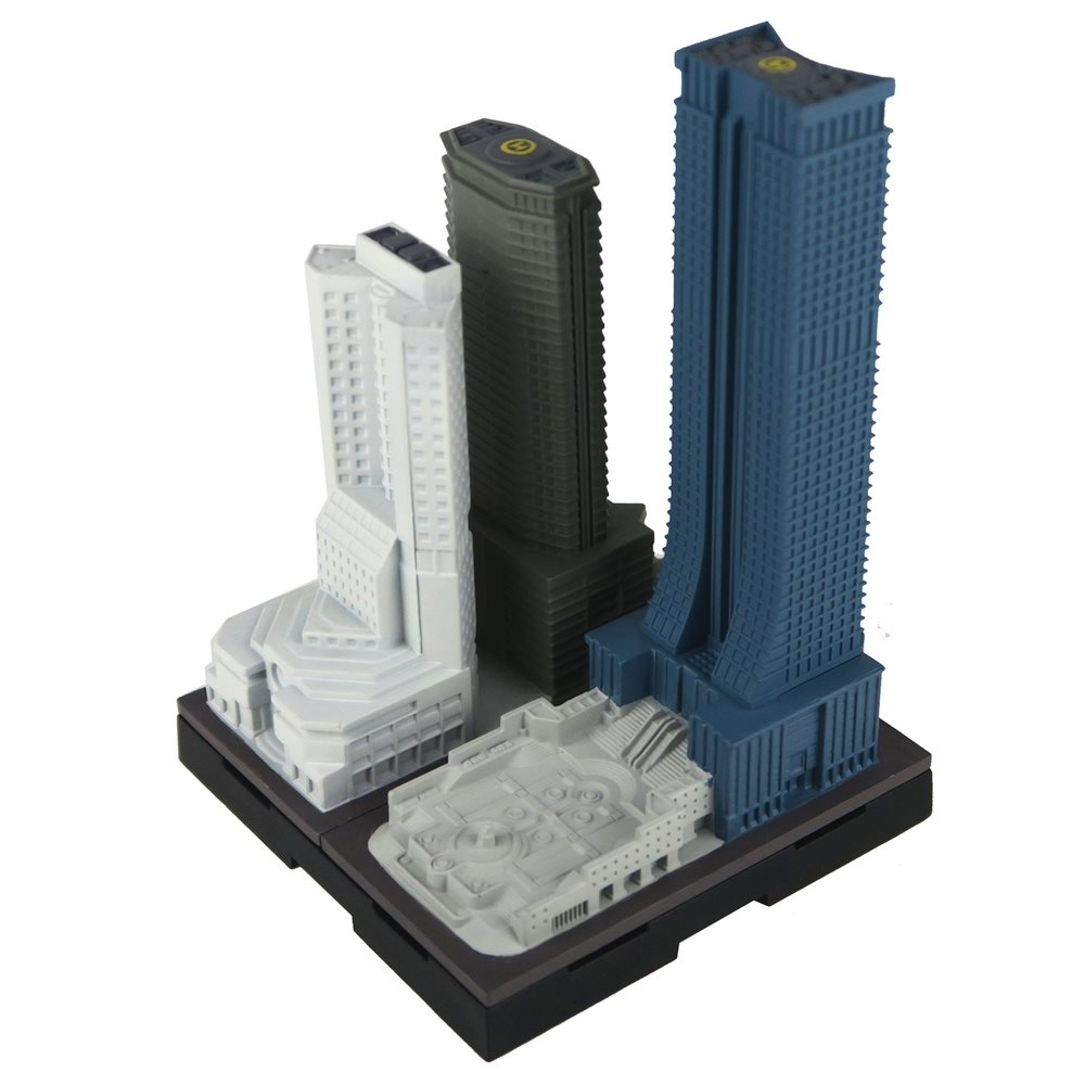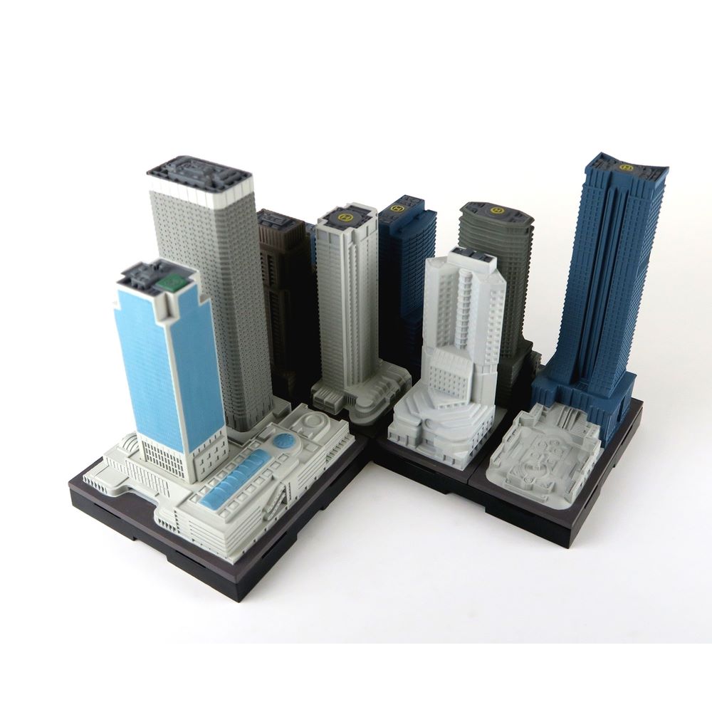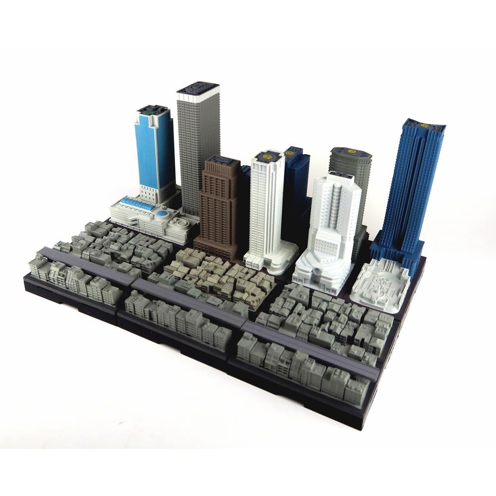 「集める、広がる、街ができる。」をコンセプト1/2500スケールで様々な建築物を立体化し、6cm角の台座に自由に配置し連結させることで「都市開発」を楽しめる商品が「ジオクレイパー」です。その都市の中心としての存在感を示す「高層ビル」に新たな彩色を施しジオクレイパーの世界観を彩る「高層ビルユニット」をオープンパッケージにして販売いたします。