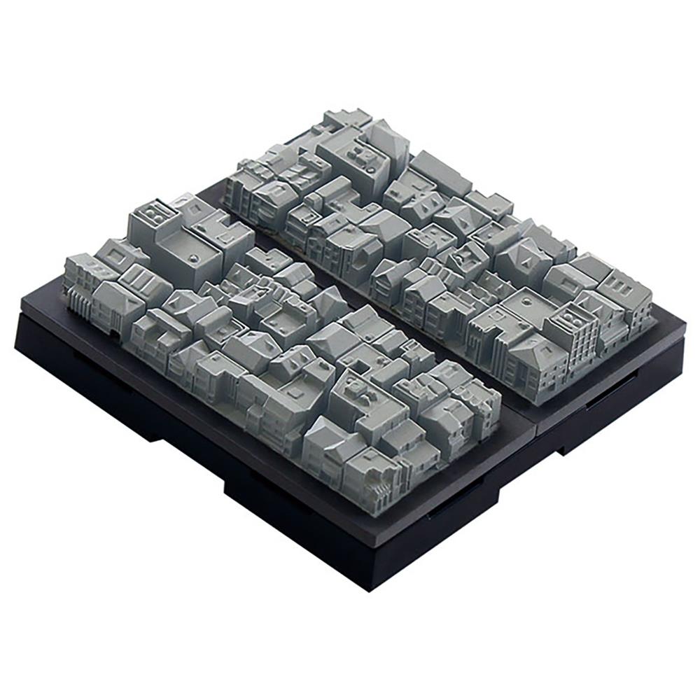 「集める、広がる、街ができる。」をコンセプトに1/2500スケールで様々な建築物を立体化し、6cm角の台座に自由に配置し連結させることで「都市開発」を楽しめる商品が「ジオクレイパー」です。全ての展開に有効的なユニットが「低層ビル」です。建築物の高低差を表現したり近隣のユニットとの協調を保ったり大変便利なユニットをお求めやすい5枚セットにしました。