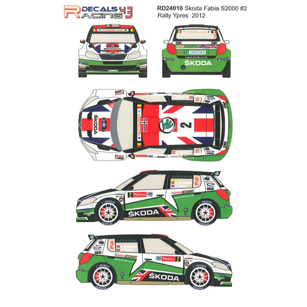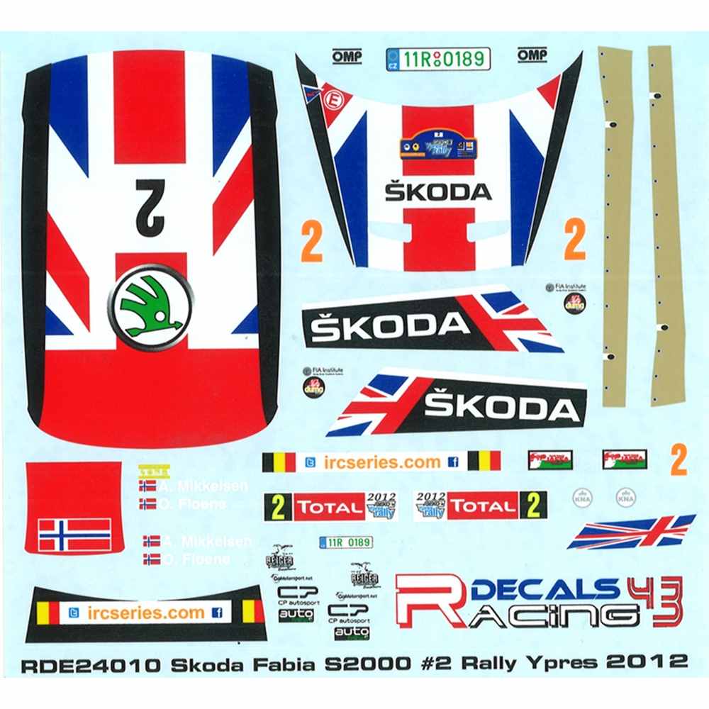 ベルキットの1/24スケール、シュコダ・ファビアS2000のモデルに対応したデカールのセットです。このセットは2012年のIRC第6戦として開催されたベルギーのGeko Ypresラリーに参戦したカーナンバー2のマシンのマーキングを収録しています。
