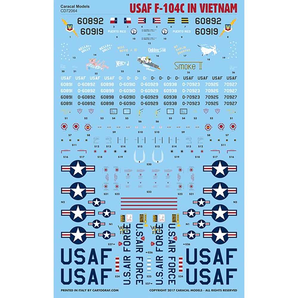 このセットではベトナム戦争に参加した米空軍のF-104Cスターファイターのマーキング10種類(シルバー2種、ベトナム迷彩8種)を収録。