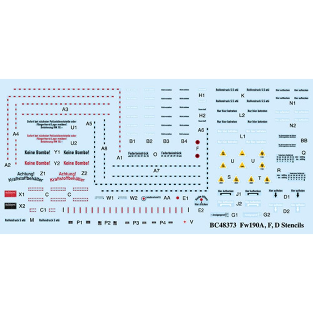 このセットでは第二次大戦のドイツ軍主力戦闘機として活躍したフォッケウルフFw-190の各タイプの機体各部に表記されているステンシルやデータのマークを収録しています。このセットであなたのモデルが一層グレードアップ。