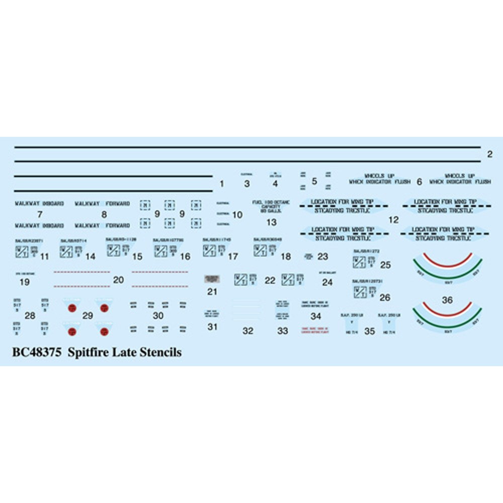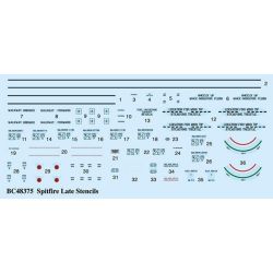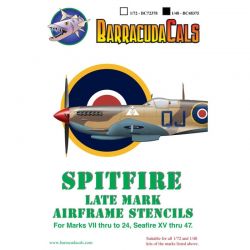 1/48スケールのスピットファイア、シーファイアのモデルに対応したデカールのセットです。このセットでは第二次大戦のイギリス軍主力戦闘機として活躍したスピットファイアのMk.VIIからMk.24とシーファイアのMk.XVからMk.47の各タイプの機体各部に表記されているステンシルやデータのマークを収録しています。マークの中にはコクピットドアのステンシルや爆弾のマーキングも含まれています。このセットであなたのスピットファイアの仕上がりがぐっとグレードアップすることでしょう。
