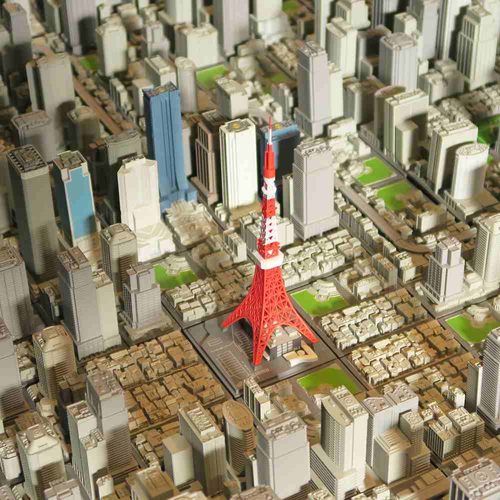 その「東京タワー」を1/2500スケールで精巧に立体化。ジオクレイパーの標準コンセプトとなる6cm 角の台座を拡張ユニットと連結することで誰でも簡単に東京の都市を作成することが可能です。