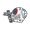 直径約50mmの金属製。ブラックのニッケルの裏地に表面のホワイトトレッドの部分は光沢あるエナメル。もちろん、服や帽子などに取り付ける際に必要なバタフライの留め金もついています。洋服だけでなく、バックやケース類などに取り付けてお楽しみいただけるピンです。
