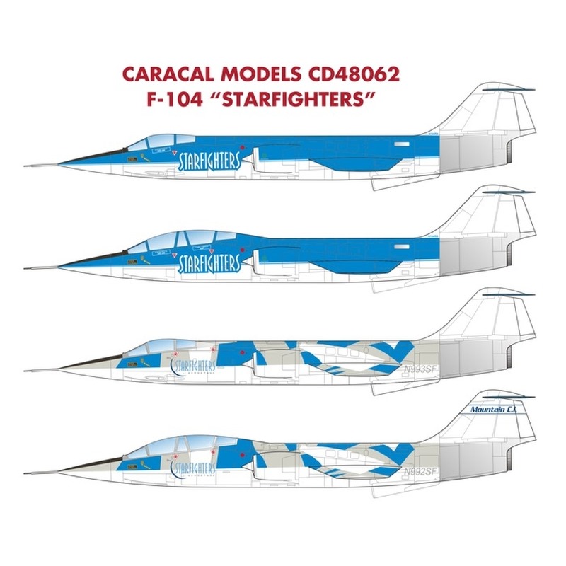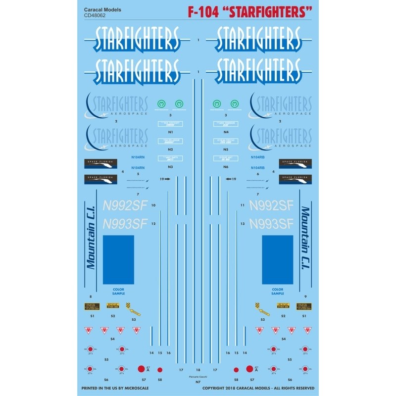 このセットは最後の有人戦闘機といわれて話題を集めたロッキードのジェット戦闘機、F-104スターファイターのマーキングを収録しています。中でも、空軍での運用が終了し、現役の軍用機として引退したのちも各種の研究用プラットフォームとして民間で運用されている機体をフィーチャー。アメリカのフロリダ州にあるスターファイターズ・エアロスペース社が運用している機体です。マーキングは初期のカラースキーム用と新しく採用されている「スプリント」カモフラージュ塗装の機体用の両方のカラースキームに対応するマーキングを用意。スターファイターズ・エアロスペース社の許可の元詳細に再現されています。ステンシルは2機分をセット。