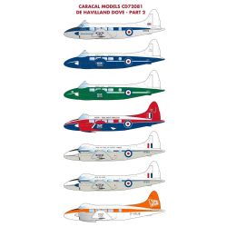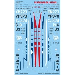 このセットはイギリスのデ・ハビランド社が開発した双発の小型旅客機、デ・ハビランドDH-104ダブのマーキングを収録しています。民間エアラインのマーキングのほか、イギリス空軍、イギリス海軍で運用された機体などのマーキング7種をフィーチャー。カラフルな仕上がりも楽しみなマーキングです。