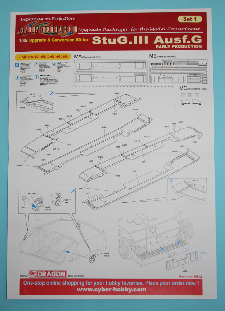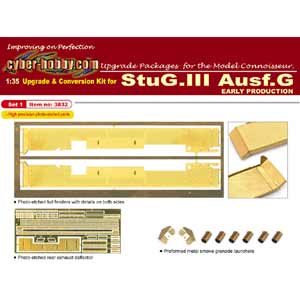サイバーホビーの1/35ドイツIII号突撃砲G型初期生産型のキットに対応したディテールアップパーツセットです。