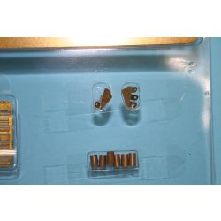また、戦闘室の前部左右に取り付けられる3連のスモークディスチャージャーパーツもセット。ベースは折り加工済みで角度もしっかりと再現できるほか、発炎筒本体の筒も円筒パーツがセットされ、先端の切り欠きなど、ディテールも再現しています。