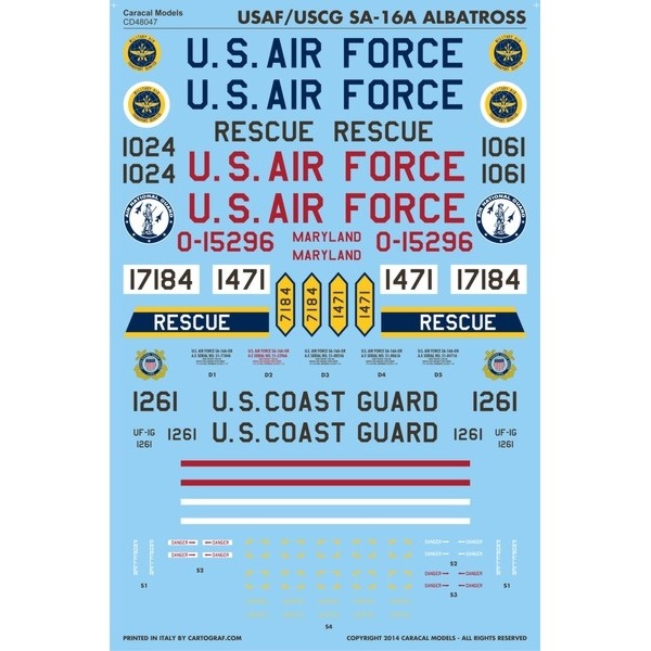 1/48スケールのトランぺッターのSA-16Aアルバトロスのモデルに対応したデカールのセットです。
