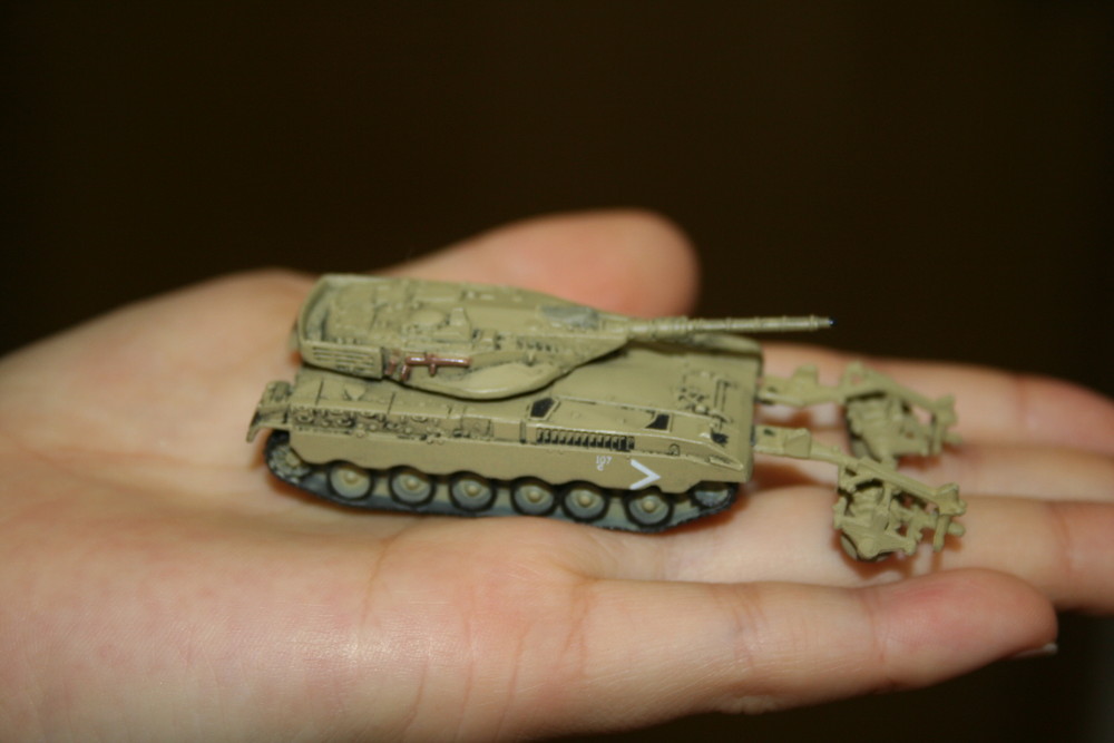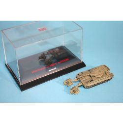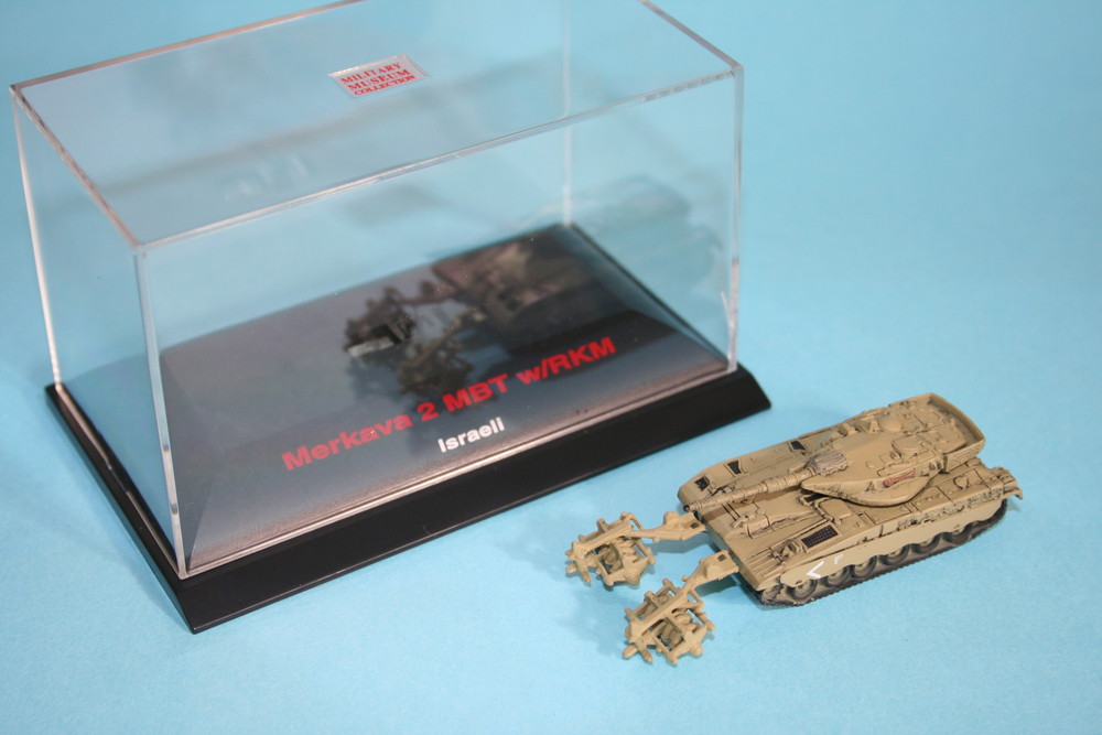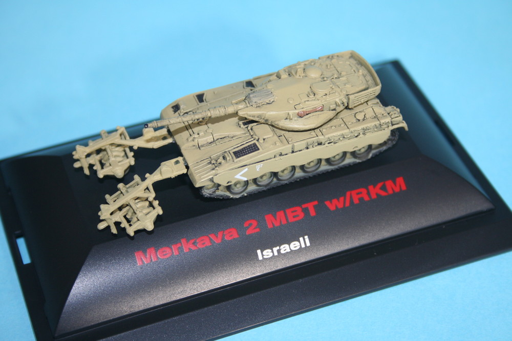 モデルは1983年から89年にかけて生産、配備されたイスラエルの主力戦車、メルカバ2を1/144スケールで再現した組み立て完成済みモデルです。