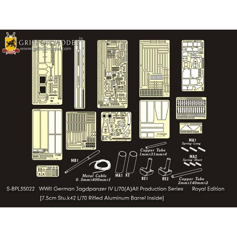 ドラゴン/サイバーホビーの1/35ドイツIV号駆逐戦車L/70(A)ツヴァイシェンレーズンクのキット(キットNo.6989/6784))に対応したディテールアップパーツセットです。