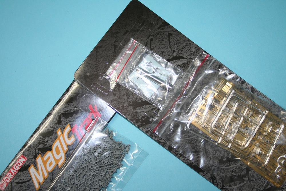 履帯は組み立て式のマジックトラックを採用。さらに、エンジンエキゾーストグリルをはじめ、各部にエッチングパーツが用意されているのも仕上がりを高めます。
