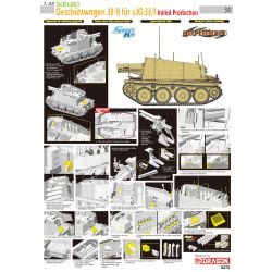 グリレはチェコの38(t)戦車のシャシーに15cm重歩兵砲sIG33を搭載した第二次世界大戦のドイツ軍オープントップ式自走砲です。最初の生産型がH型でチェコのBMM社で1943年2月から44年9月にかけて400両近くが生産されました。H型ではエンジンが車体後部にレイアウトされたシャシーのため戦闘室を車体中央にレイアウトせざるを得ず、搭載砲が車体前方に位置するためフロントヘビーの重量配分となってしまっていました。その欠点を修正すべく、エンジンを中央にレイアウトし戦闘室をリアに配置できるようエンジンを中央に配置した専用シャシーを採用したK型が1943年12月から生産されましたがH型も並行して生産が続けられたのでした。