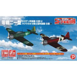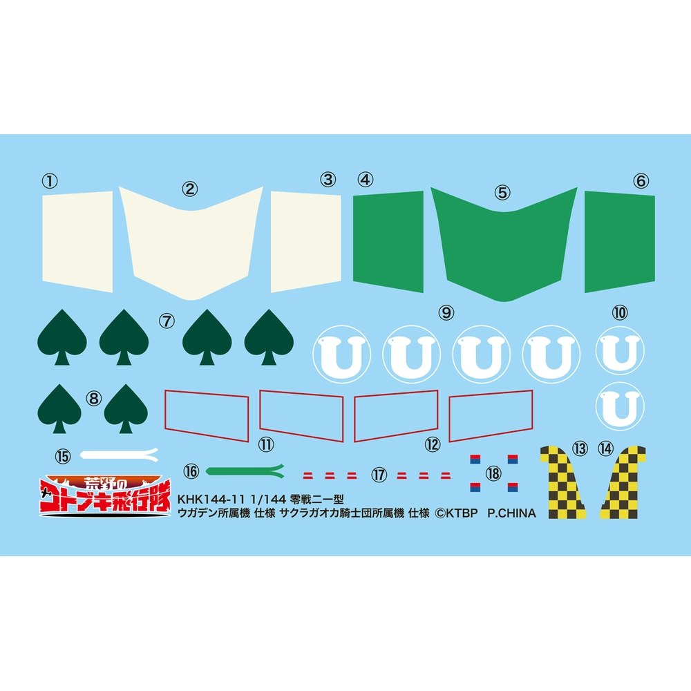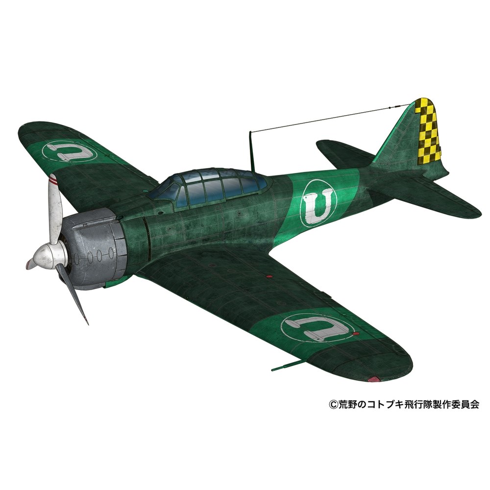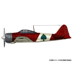劇中に登場した「零戦二一型」をモデル化。Uのマークと尾翼のチェッカー柄が特徴的なウガデン所属機と、スペードマークが映えるサクラガオカ騎士団所属機をセットで再現。1/144の手のひらサイズながら、特徴的なマークなど機体に施されたマーキングはデカールでしっかりと再現。