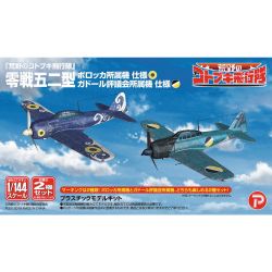 劇中に登場した「零戦五二型」をモデル化。自由博愛連合と反連合の同盟軍との戦いに参戦しているポロッカ所属機と、ガドール評議会所属機をセットで再現。1/144の手のひらサイズながら、特徴的なマークなど機体に施されたマーキングはデカールでしっかりと再現。それぞれ各1機ずつを組み立て可能。作り比べも楽しめます。