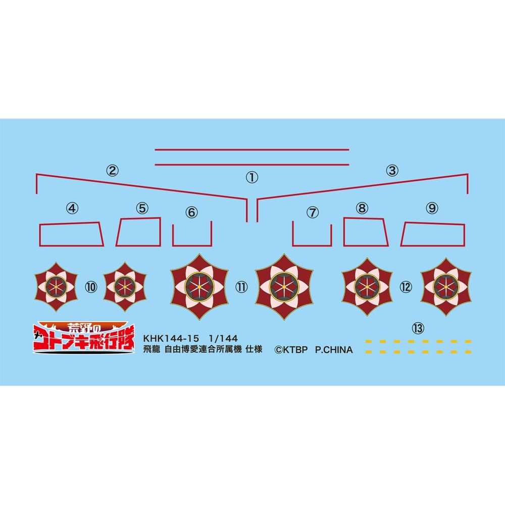 アニメに登場した「飛龍」の自由博愛連合所属機をリアルに再現。1/144スケールながら、細部までしっかりとモデル化。主翼や胴体に施された特徴的なマーキングなどはデカールで再現可能。