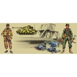 そして、その覇権を巡り攻防を繰り広げたドイツ軍とイギリス軍の兵士などもセット。守備側のドイツ軍は歩兵のほか、7.5cmと3.7cmの対戦車砲各1門、さらに、20mm四連装対空機関砲とIV号戦車H型が各1個がセットされています。一方の攻撃側のイギリス軍は勇猛果敢な戦いを繰り広げて橋の確保に成功した空挺師団グライダー兵をモデル化しています。