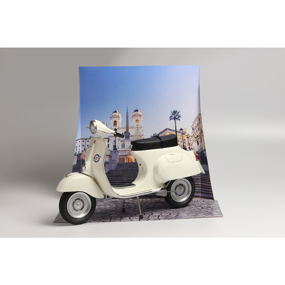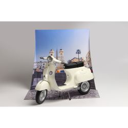 モデルはイタリアの代表的スクーター、ベスパ125プリマベーラの1968年に登場した初期タイプをモデル化した1/9スケールのプラスチックモデル組み立てキットです。