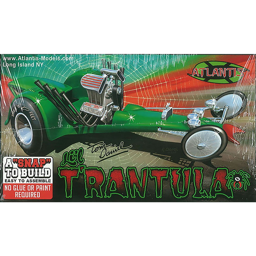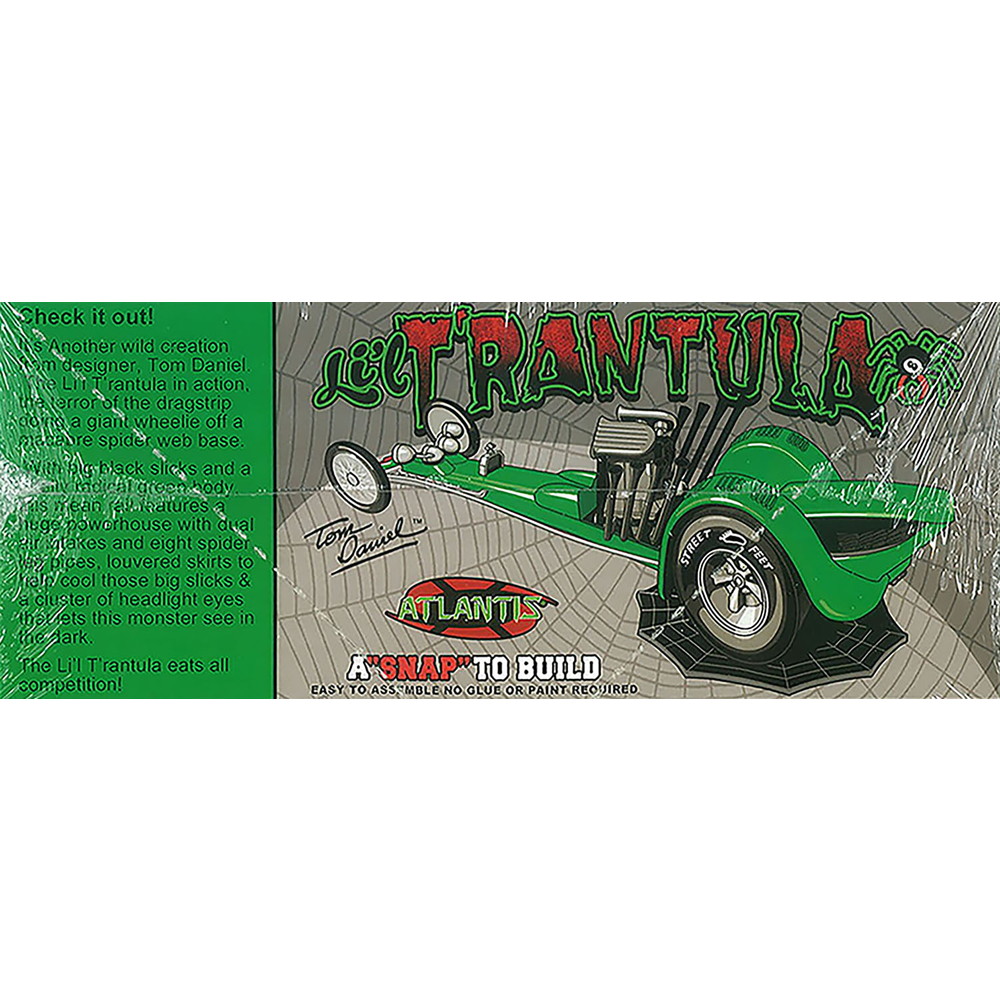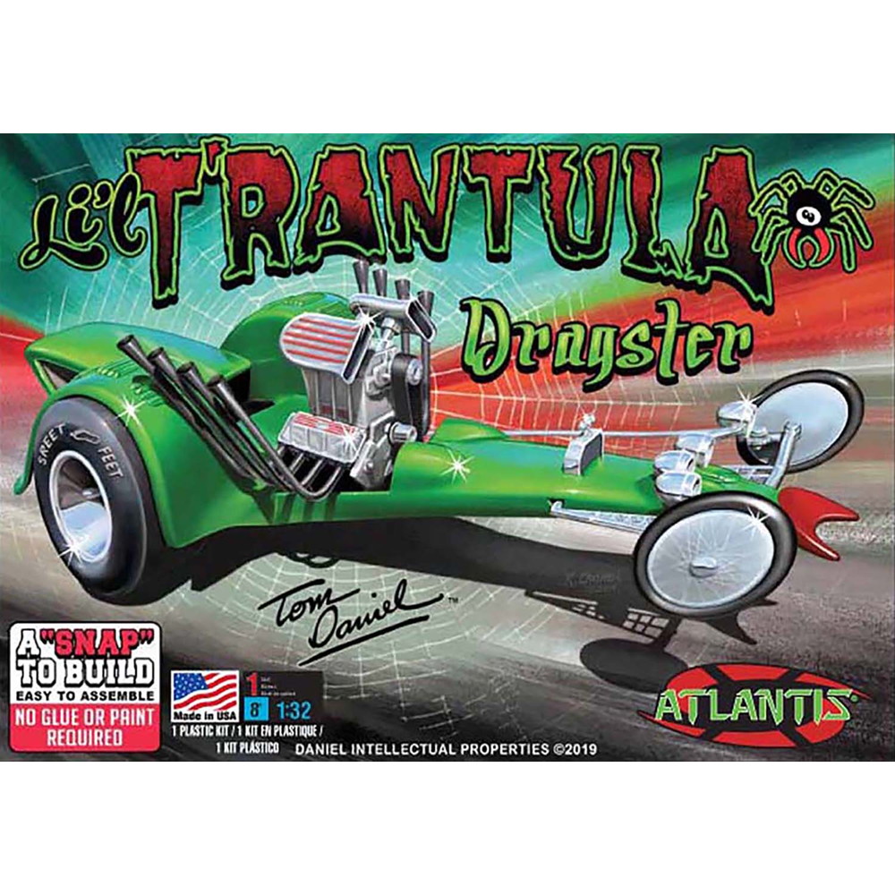 モデルは人気デザイナー、トム・ダニエルのデザインによるドラッグスター、リル・タランチュラを1/32スケールで再現したプラスチックモデル組み立てキットです。