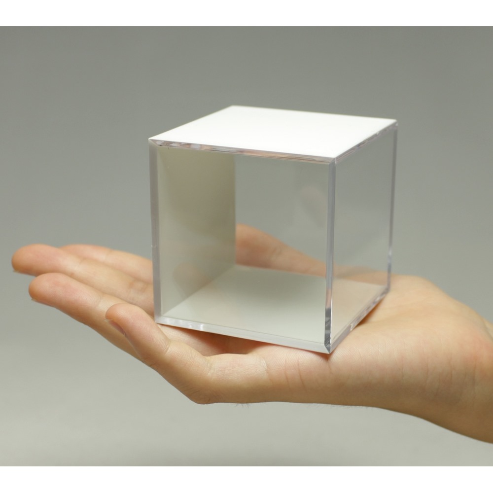透明のコの字のパーツは樹脂製の成形部品。高い精度の成形技術により、2つのパーツは組み合わせたときに隙間などなく、もちろんつなぎ目などもありませんから、中に入れた展示品をいっそうきれいに見せることができます。