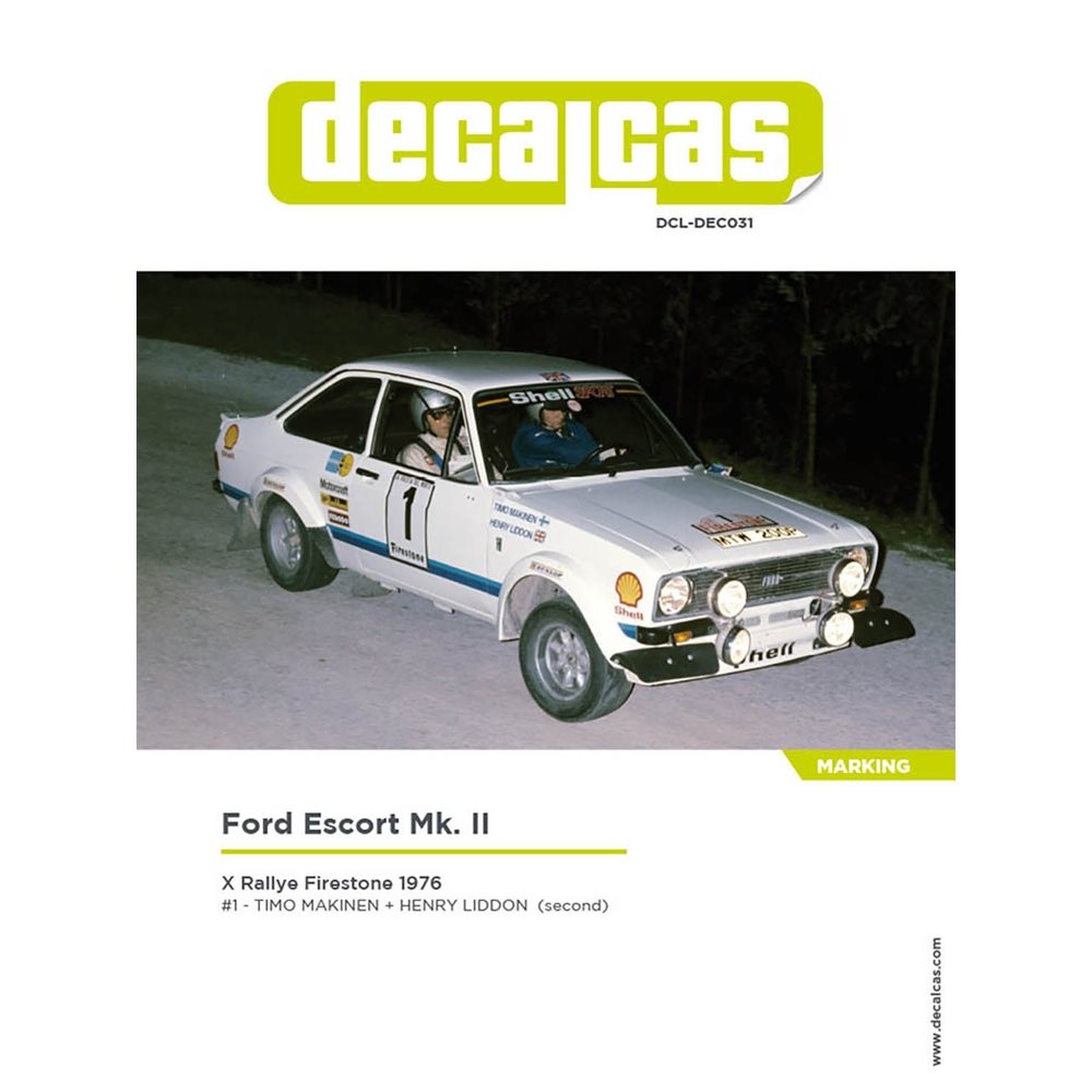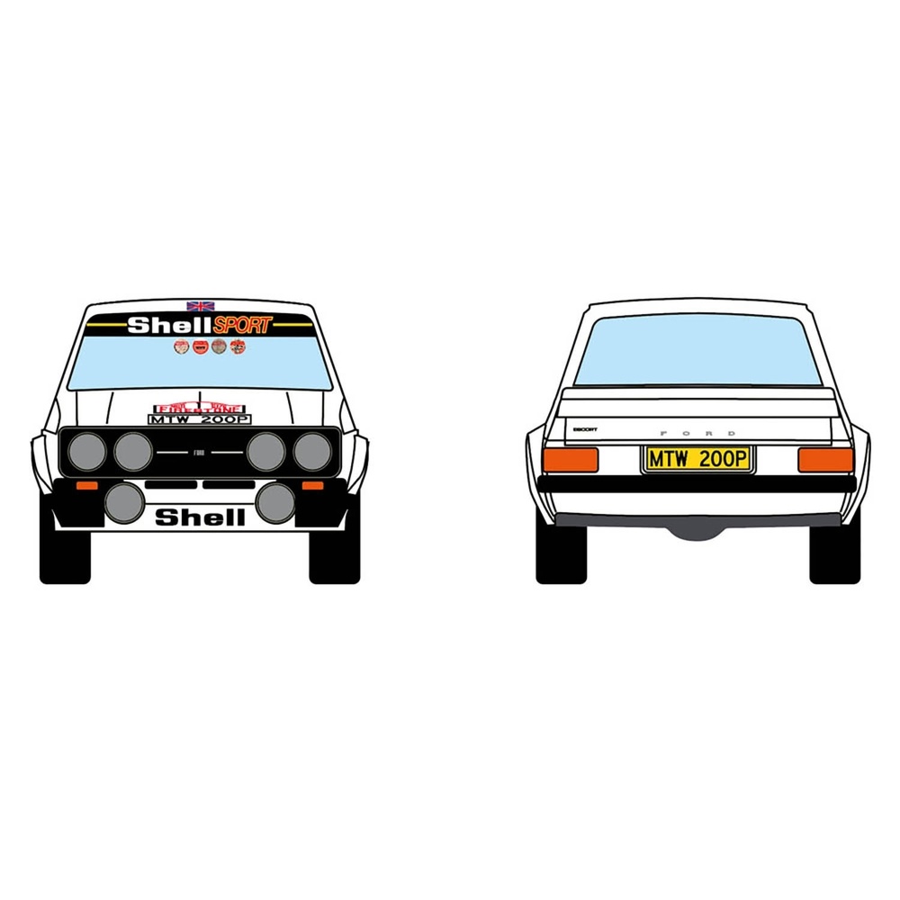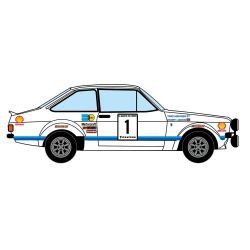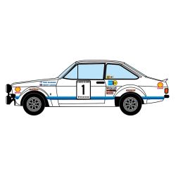 ヨーロッパ・フォードが製造販売した乗用車、エスコートは1968年に発売された初代から世界のラリーやツーリングカーレースで活躍するハイパフォーマンスを発揮しました。このセットでは1975年に登場したRS1800Mk.IIのラリー仕様で1976年の3月にスペインで開催されたラリー・ファイアストンに参加し,見事2位入賞を飾ったカーナンバー1のマシンのマーキングを収録。
