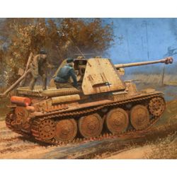 T-34などのソビエト戦車に対抗するため、ドイツ軍は既成戦車の車台を利用し対戦車砲を搭載した自走砲の開発を積極的に進めました。チェコ製の38(t)戦車をベースとしたマーダーIIIはそのうちのひとつであり、ベース車台の形式や戦車砲の搭載位置の違いなどによりいくつかのバリエーションが存在します。