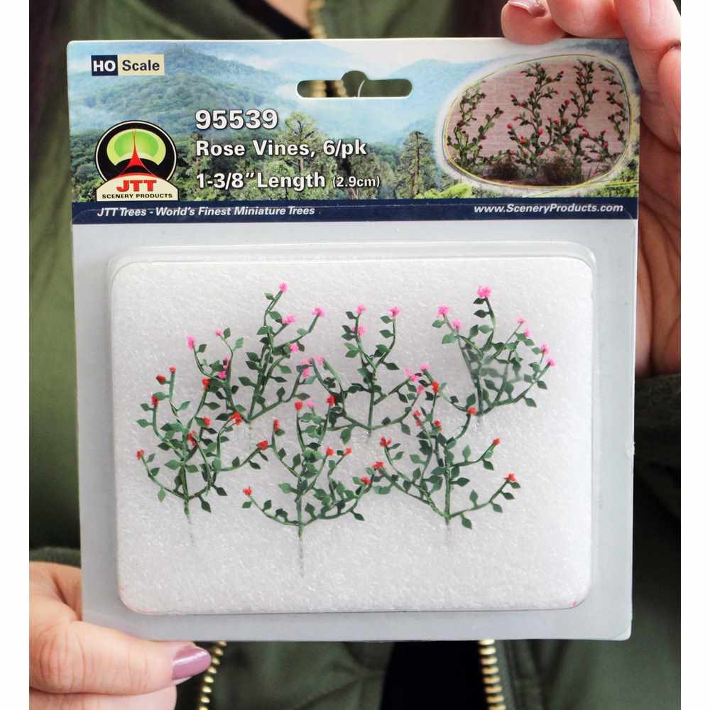 豊富な情景やレイアウトに使用できるアクセサリーをラインナップするJTTの中で花を再現するアイテムの一つです。このセットでは庭などに植えられる事が多いつるバラをモデル化しています。