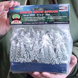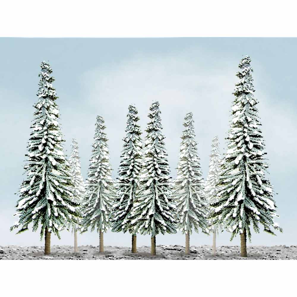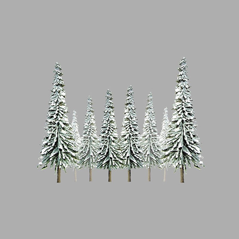 すっと伸びた松の木を表現しています。このセットでは冬に葉っぱが雪をかぶった様子を再現。下地のグリーンとのグラデーションも魅力です。2種類の高さの木をセット。根本に取り付ける直径約1.5cmの円形ベースも用意。