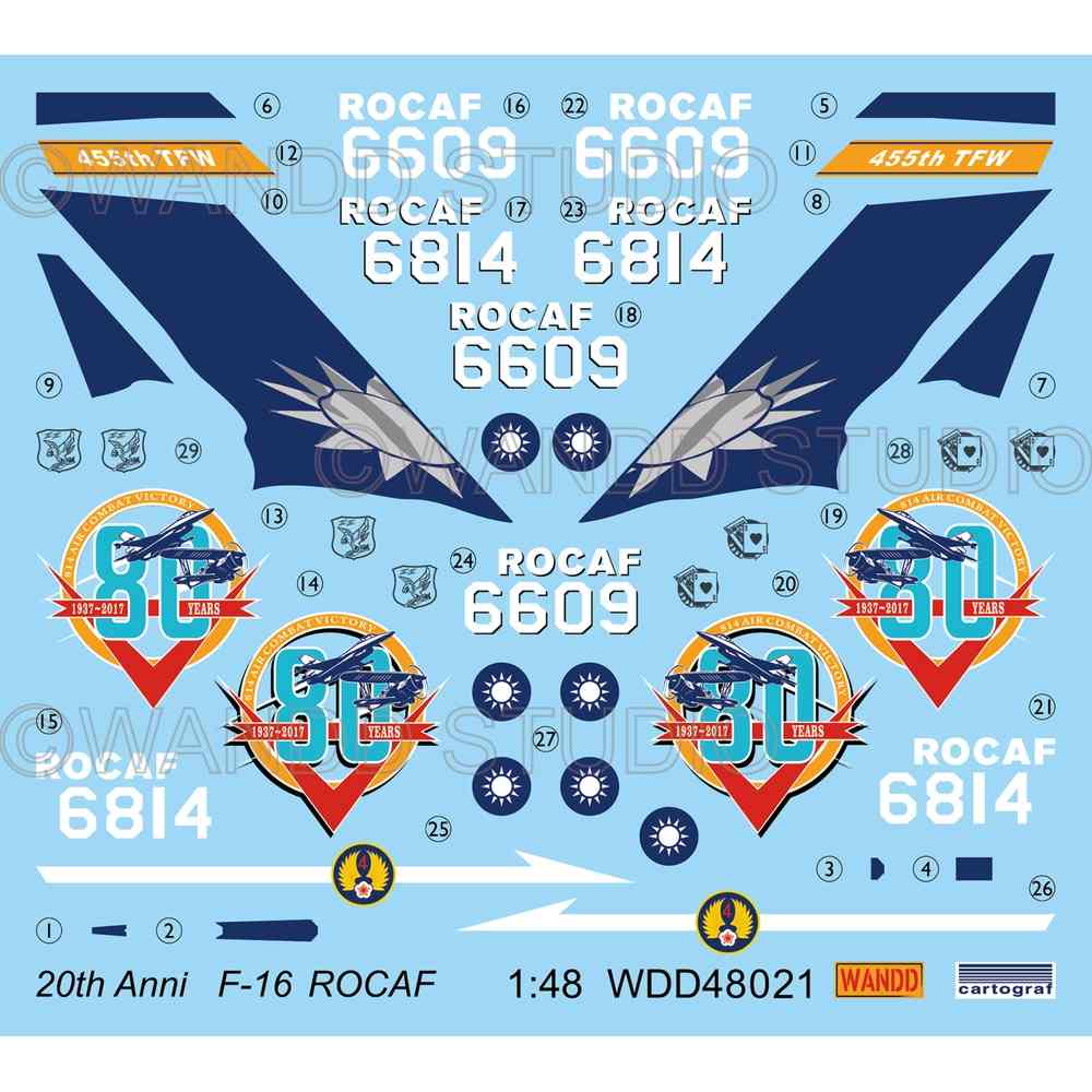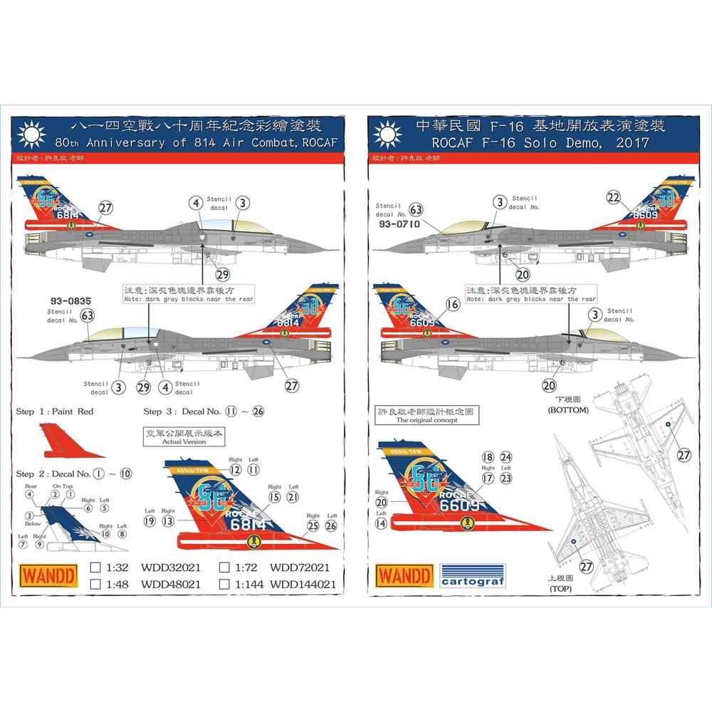 このセットでは台湾の中華民国空軍が「814空戦」から80周年をキネシて、2017年に当時の中華民国空軍455連隊が運用していたF-16に施した記念塗装のマーキングを再現。尾翼に描かれた記念ロゴなどの他、機体各部のステンシル類もセット。
