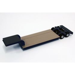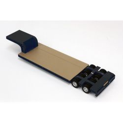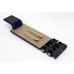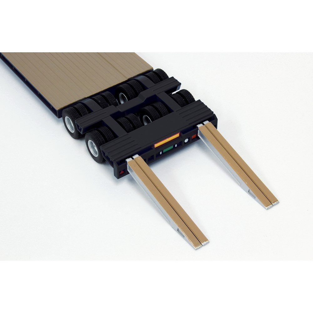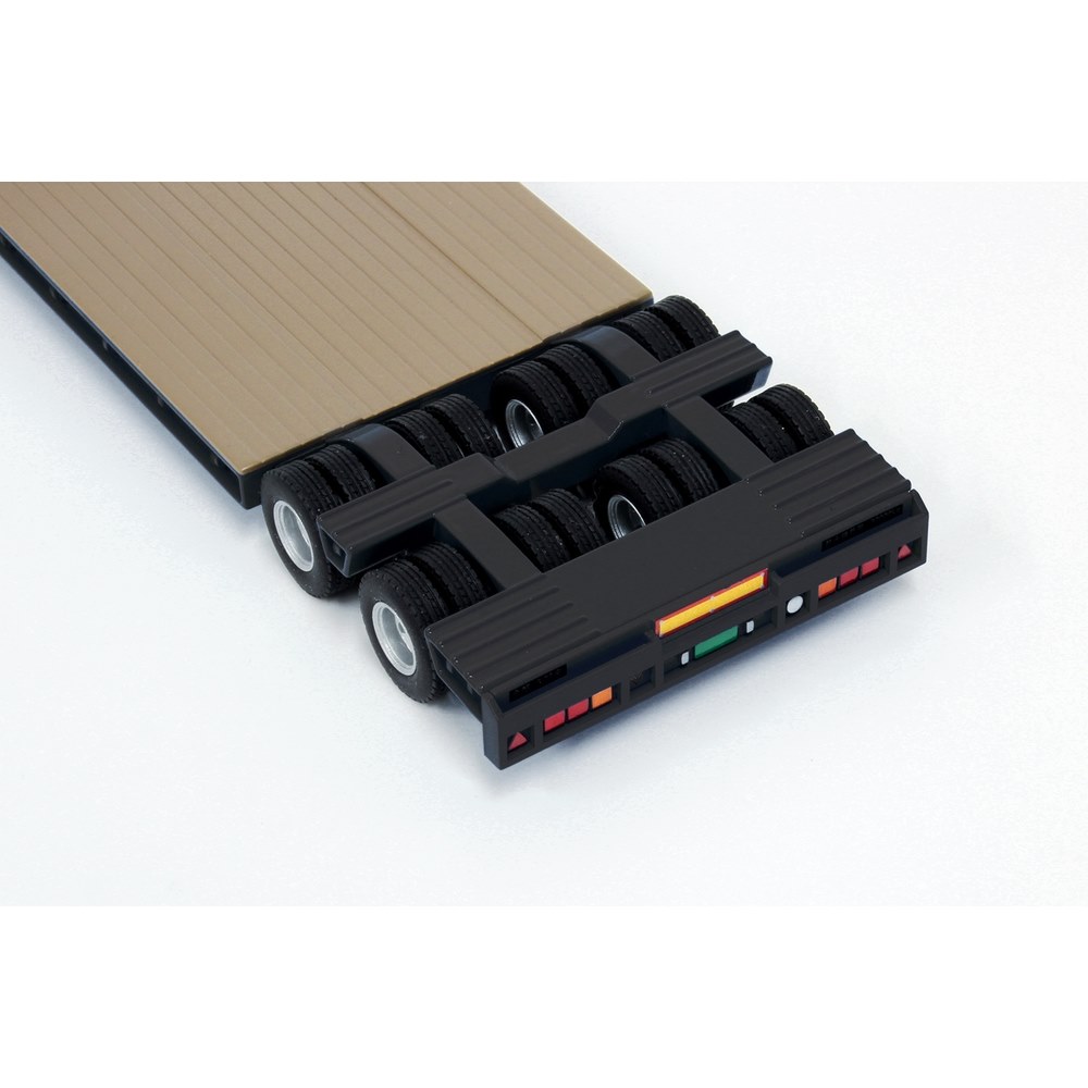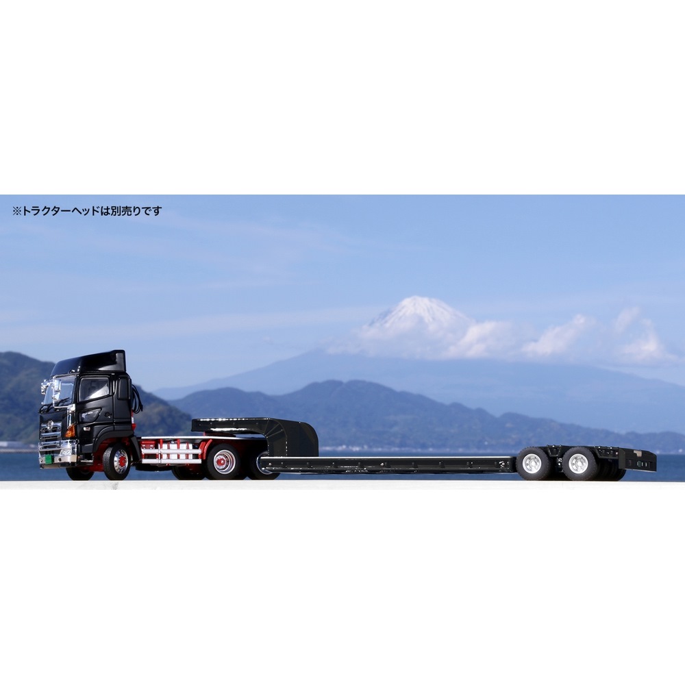 重量物運搬用に開発されたトレーラならではの荷台部分を低く下げた特徴あるデザインやトラクターとの連結部分のグースネック形状などもリアルに再現。形だけでなくフレーム部分などの細かなディテールもしっかりとモデル化しています。荷台サイドに装備された荷物固定用フックも再現。実車同様に大型の建機など、同じスケールのモデルを搭載して固定することもできます。