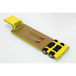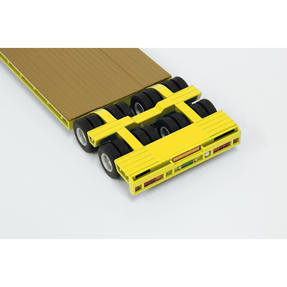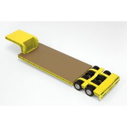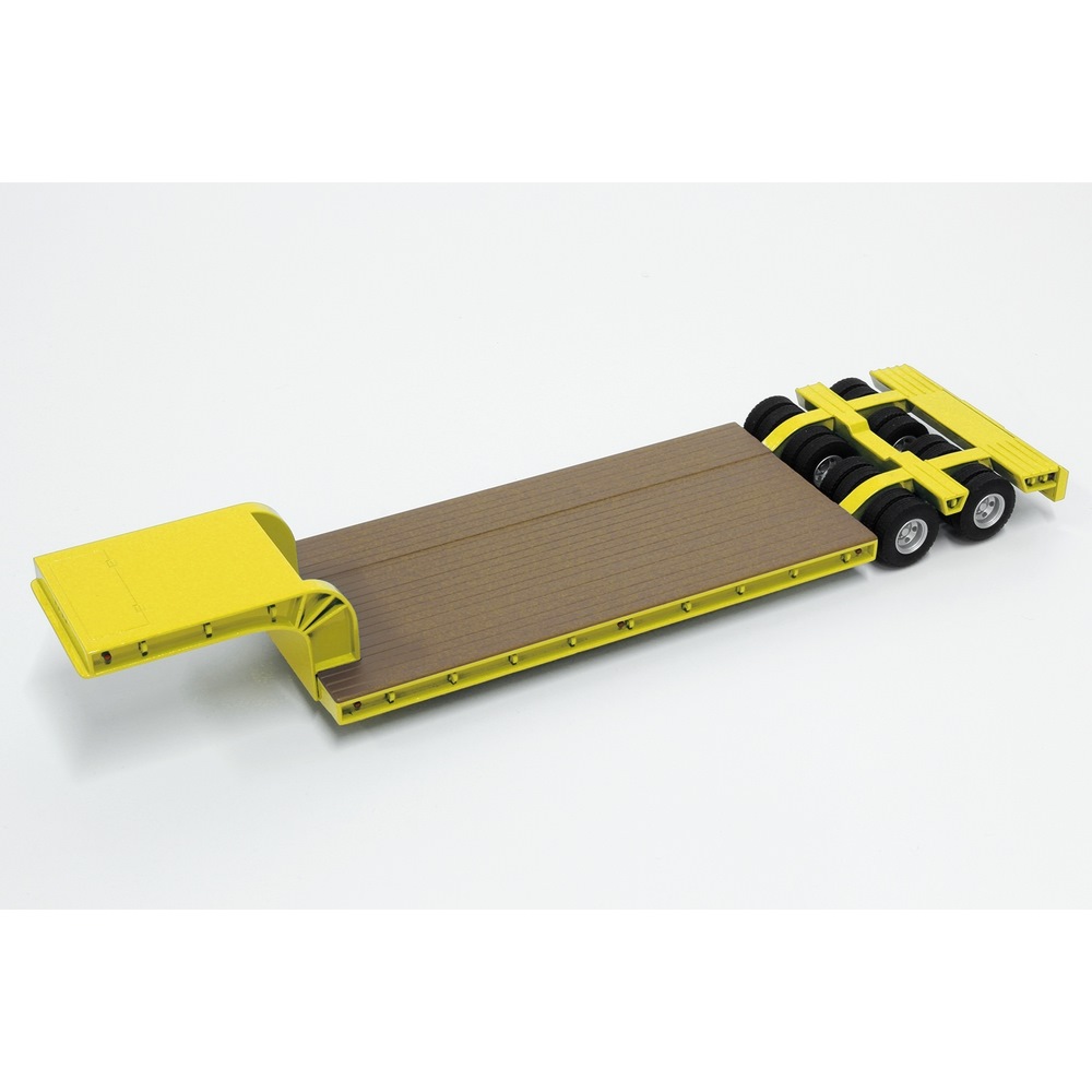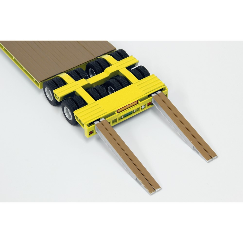 重量物運搬用に開発されたトレーラならではの荷台部分を低く下げた特徴あるデザインやトラクターとの連結部分のグースネック形状などもリアルに再現。形だけでなくフレーム部分などの細かなディテールもしっかりとモデル化しています。荷台サイドに装備された荷物固定用フックも再現。実車同様に大型の建機など、同じスケールのモデルを搭載して固定することもできます。