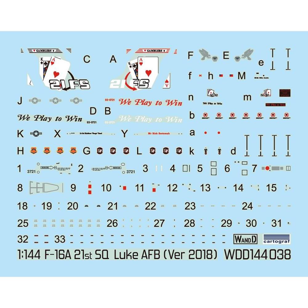 コード:4545782065268台湾の中華民国空軍パイロットを育成するアメリカ空軍の部隊、ルーク空軍基地にベースを構える第21飛行隊のF-16の機体に描かれたマーキングのデカールです。デカールではそこで運用されているF-16の機体のマーキングを再現しています。司令機の派手な尾翼に注目です。デカールは高品質でおなじみのイタリアのカルトグラフ社製。