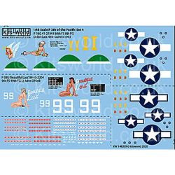 セット4は、1943年にニューギニアに展開した第8戦闘グループ第80戦闘飛行隊所属のP-38Gタイプ機と第49戦闘グループ第8戦闘飛行隊所属のジョン・オニール搭乗機「ビューティフル・ラス」機をセレクト。どちらも女性の魅力的なイラストのノーズアートが楽しみなマーキングです。