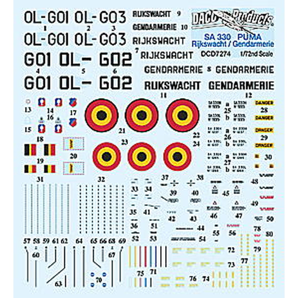 ベルギーの連邦警察が運用するヘリコプター、SA330プーマのマーキングを再現します。