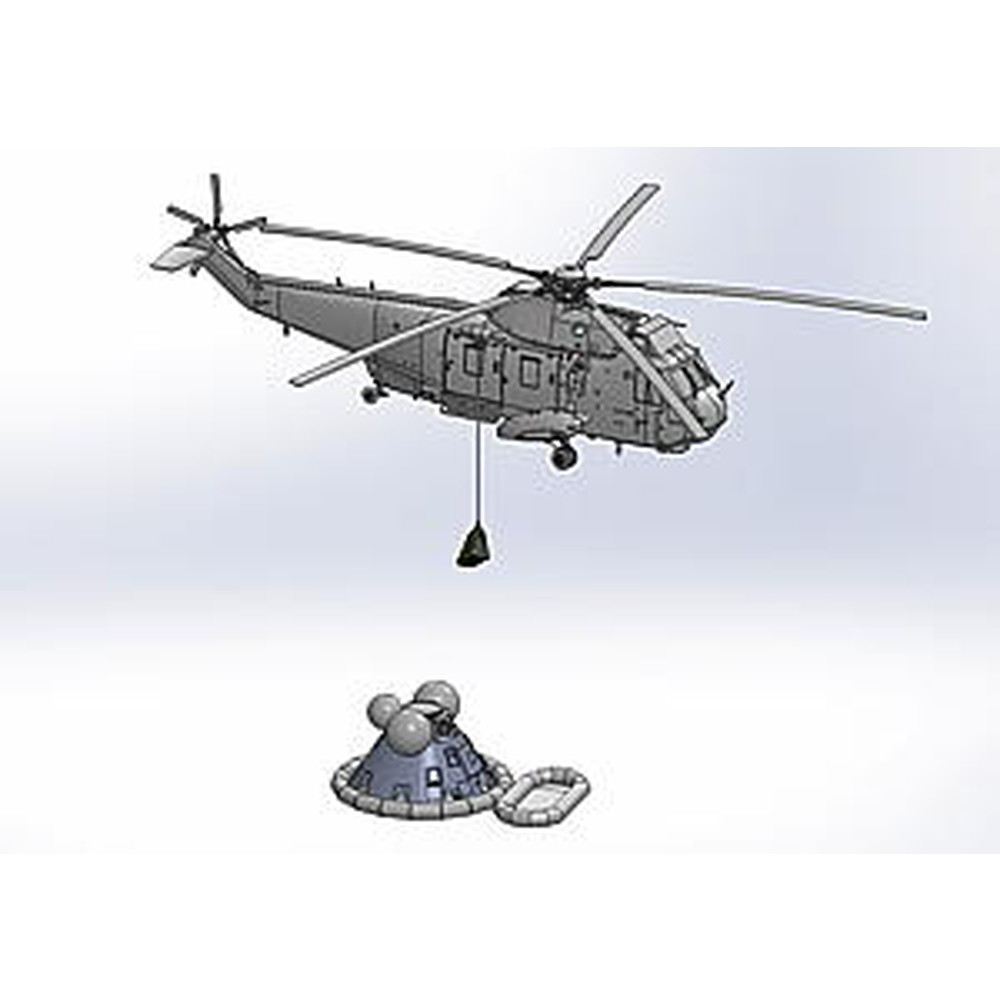 ヘリコプターは1961年から運用が開始されていたシコルスキーのSH-3シーキングでした。アメリカ海軍で対潜水艦(ASW)任務をはじめ、さまざまな任務に活躍。その中でアポロ司令船の回収に使用された機体はSH-3Dで1967年に配備された機体です。