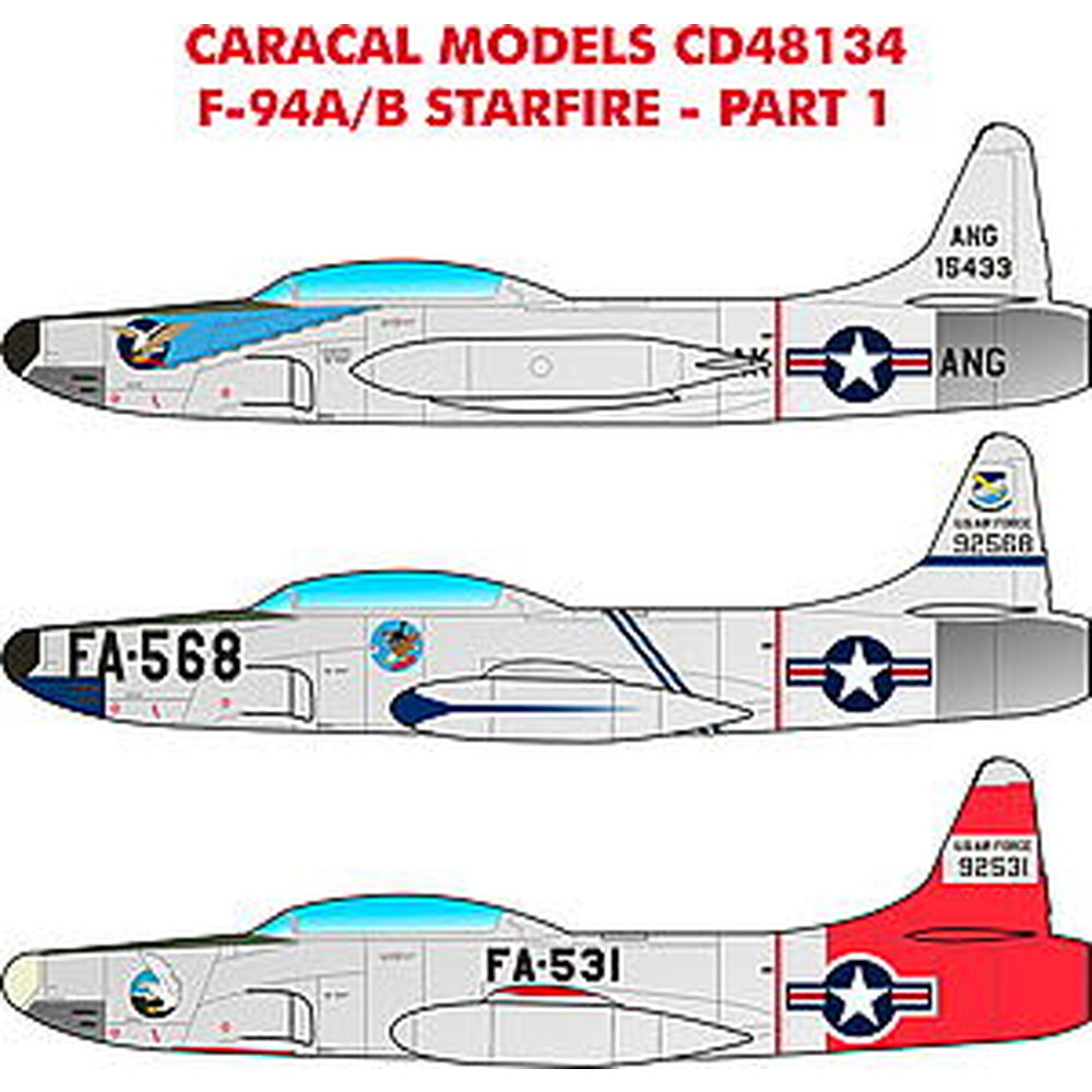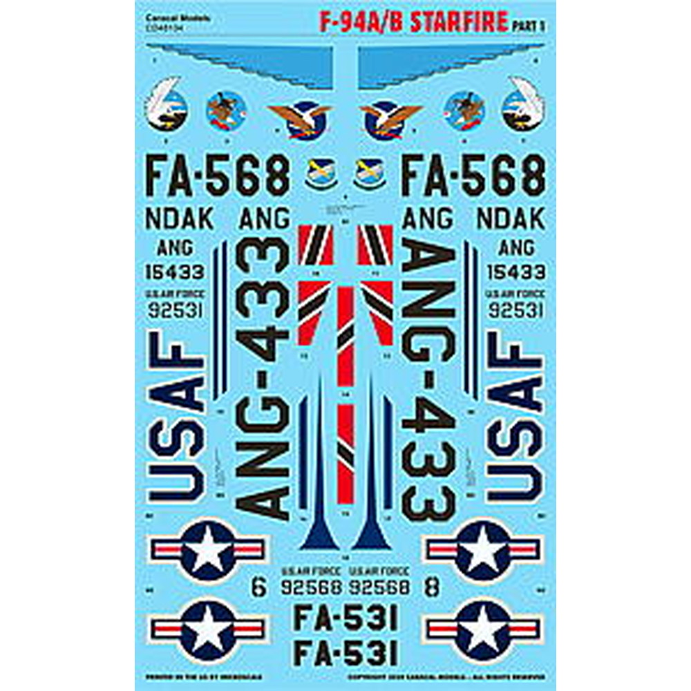 1950年から1960年にかけての冷戦時代にアメリカ空軍の全天候戦闘機として活躍したF-94のマーキングを収録しています。中でもこのセットでは1950年代初頭に活躍した機体の中からセレクト。カラフルな3機のマーキングが収録されています。