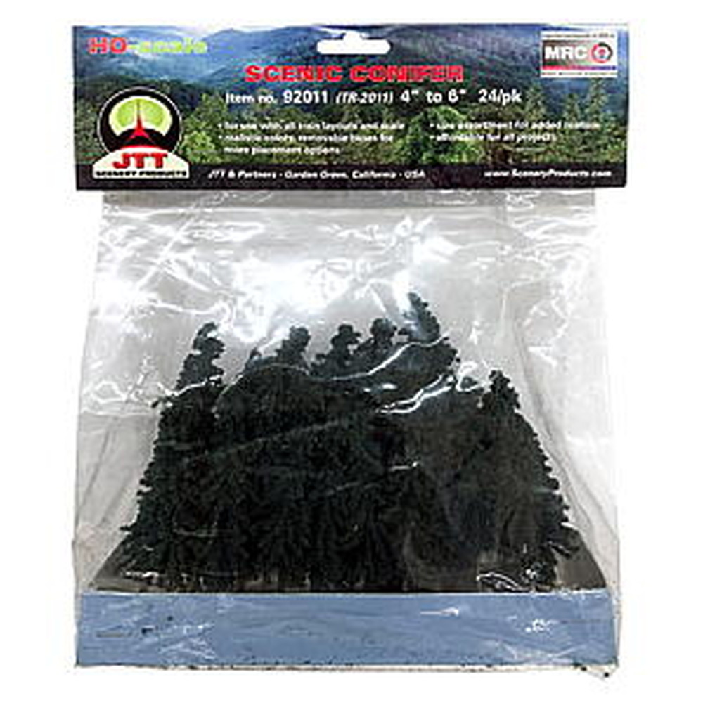 緑の葉が生い茂る季節を表現。高さはそれぞれ2 種類をセット。パーツの根本に取り付ける円形のベースパーツも用意されています。 それぞれ幹と枝、そして、緑の葉っぱがついた状態の完成済み。先端に行くほど尖った姿の針葉樹ならではのフォルムもしっかりとモデル化しています。葉っぱの色もヨーロッパなどの針葉樹によく見られる少し暗い、濃いめのグリーン。