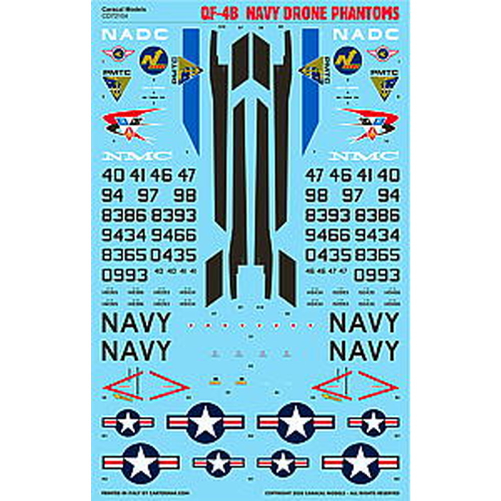このセットは退役したF-4ファントムを改造して無人標的機としたQF-4の中でも40機以上が製作されたF-4B改造のQF-4B型のマーキングを収録しています。カラフルなアメリカ海軍の標的機型ならではのマーキングが見逃せません。