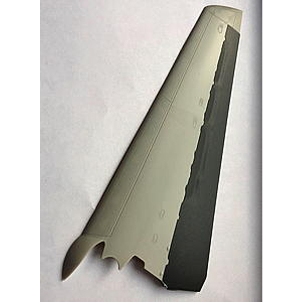 ガルグレー/ホワイト塗装で仕上げる際にホワイトに塗られる可変翼スポイラー&フラップ部分をマスキングします。