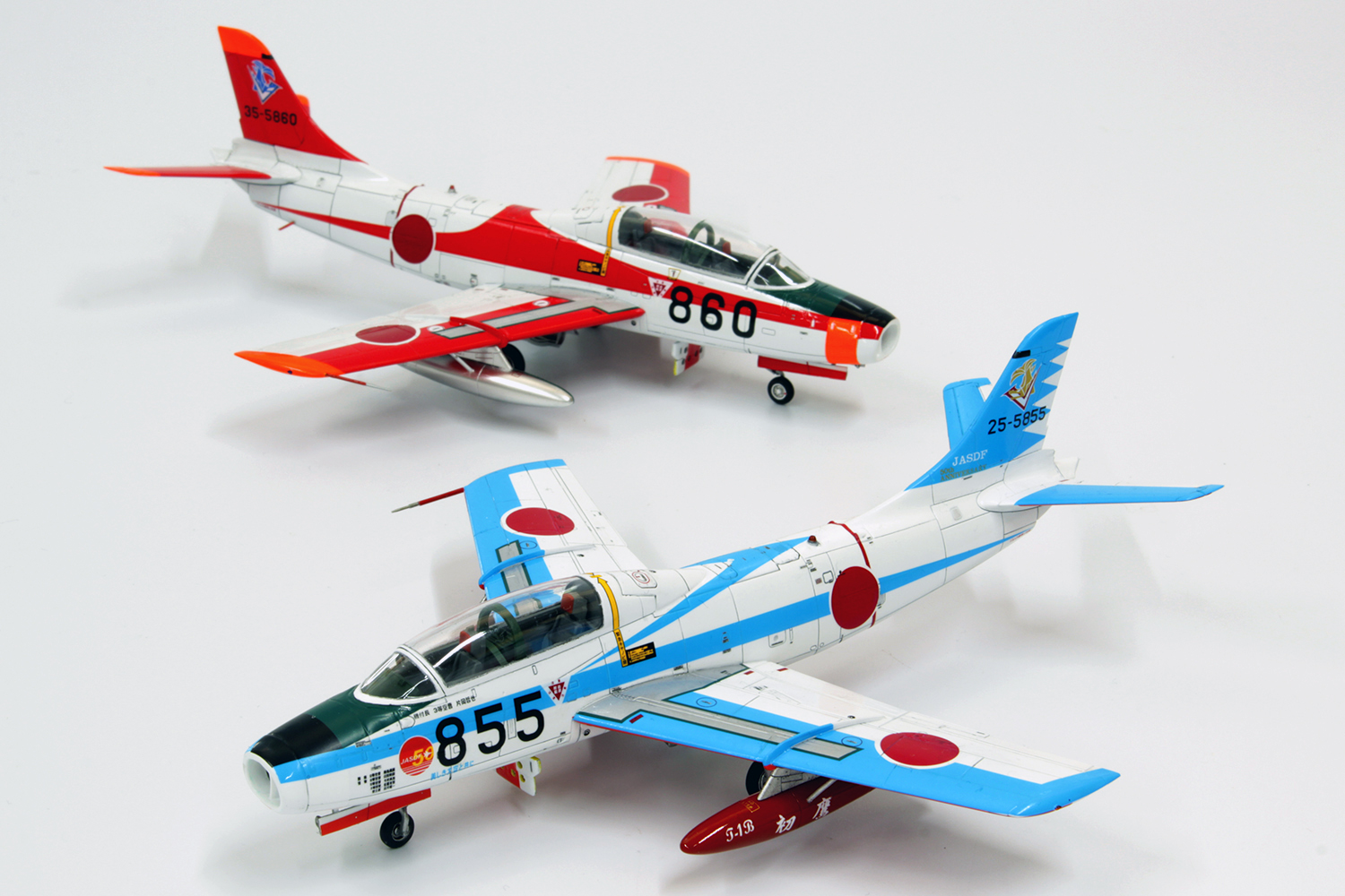 戦後初の国産ジェット機として登場した航空自衛隊のT-1練習機。多くのパイロットを育てたこの傑作機は、在役中に多くのスペシャルマーキングが施されました。そんな中でもいまだにファンの心に強い印象を残している1機が1/72スケールで登場です。航空自衛隊50周年となった2004年、第5術科学校の855号機に施された特別塗装を完全再現しました。