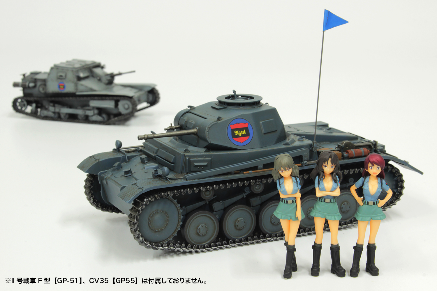 好評発売中の1/35 ll号戦車F型 青師団高校【品番:GP-51】や1/35 CV35 青師団高校【品番:GP-55】、1/35のサンダース大学付属高校の車輌と合わせてさらに楽しめるキットです。