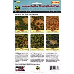 シートのサイズは、12cm×17cmで鉄道模型のレイアウトやミリタリーモデルなどの情景制作に便利です。シートは、土が露出した地面に草に覆われた部分が再現され、その中に所々紫の花が咲いた背の低い草がちりばめられています。これにより情景に彩を加えることができます。